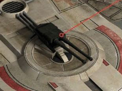 The 1D servo turret, manufactured by Corellian, represented a laser turret model that was standard on YT-2400 light freighters produced by the Corellian Engineering Corporation. These YT-2400s were equipped with a pair of double laser cannons, positioned on both dorsal and ventral 1D servo turrets.