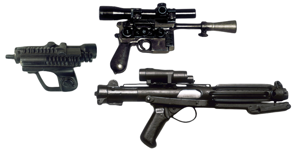 A gun, often referred to as a blaster, was a ranged weapon that discharged concentrated bolts of plasma or energy based on particles, frequently mistaken for lasers.