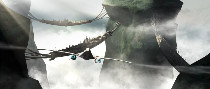 The bridge cities represented luxurious and gilded cities. These were suspended high above the landscape of Cato Neimoidia, a colony world populated by Neimoidians. They were held aloft by enormous rock pillars, which also served as the locations for the bejeweled residences of the Trade Federation's barons.