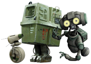 Second class droids were skilled in engineering and technical fields. Examples include the DUM-series pit droid, the PLNK-series power droid, and the WED-15 Septoid Treadwell.