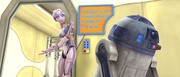 During the time of the Clone Wars, Todo 360 used trickery to convince R2-D2, who was indeed in need of cleaning, to visit Droid Spa. This maneuver served to separate R2-D2 from C-3PO, allowing Todo and HELIOS-3E to abduct the protocol droid on behalf of Cad Bane.