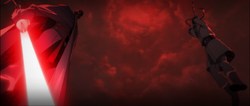 After the fight concluded, Bichan stood before Toul, who was unable to move.