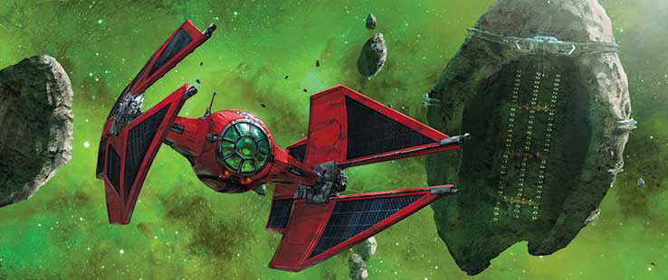 FirstOrderProvocateur-SWZ Vonreg's TIE patrolling outside Station Theta Black. After a spider probe droid detected Resistance operatives within the Dassal system, the First Order was alerted, and Major Vonreg commanded a squadron of TIE fighters to attack. He was ultimately compelled to withdraw after being lured into a gravity well.
