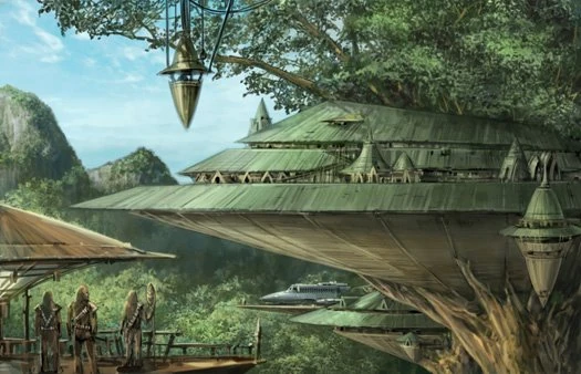 Sometime after the Tho Yor's departure, Kashyyyk fell under the control of the Rakatan Infinite Empire. The Rakata terraformed the planet's surface for agricultural purposes. However, the collapse of their empire resulted in the abandonment of their terraforming machines, which led to the abnormally large plant life found on the planet.