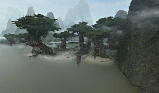 The planet made its debut in 1978 via The Star Wars Holiday Special, and it finally appeared on the silver screen in 2005 in Star Wars: Episode III Revenge of the Sith. Phuket, Thailand, and Guilin, China were scouted as locations for Revenge of the Sith, to obtain background plates for Kashyyyk. In the former, the planet was reused as backgrounds from the matte painting of Yavin Prime from Star Wars (as it was then known), colored in green.