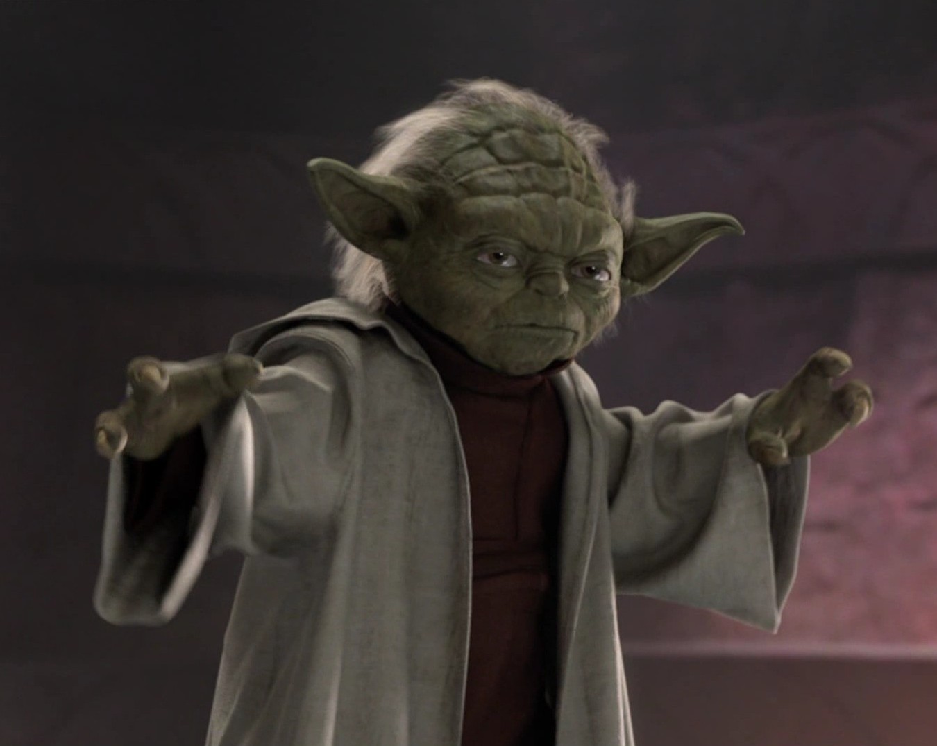 In order to most effectively engage Count Dooku in battle using the Force, Yoda, a Jedi Master and Consular, takes up a specific battle ready posture.
