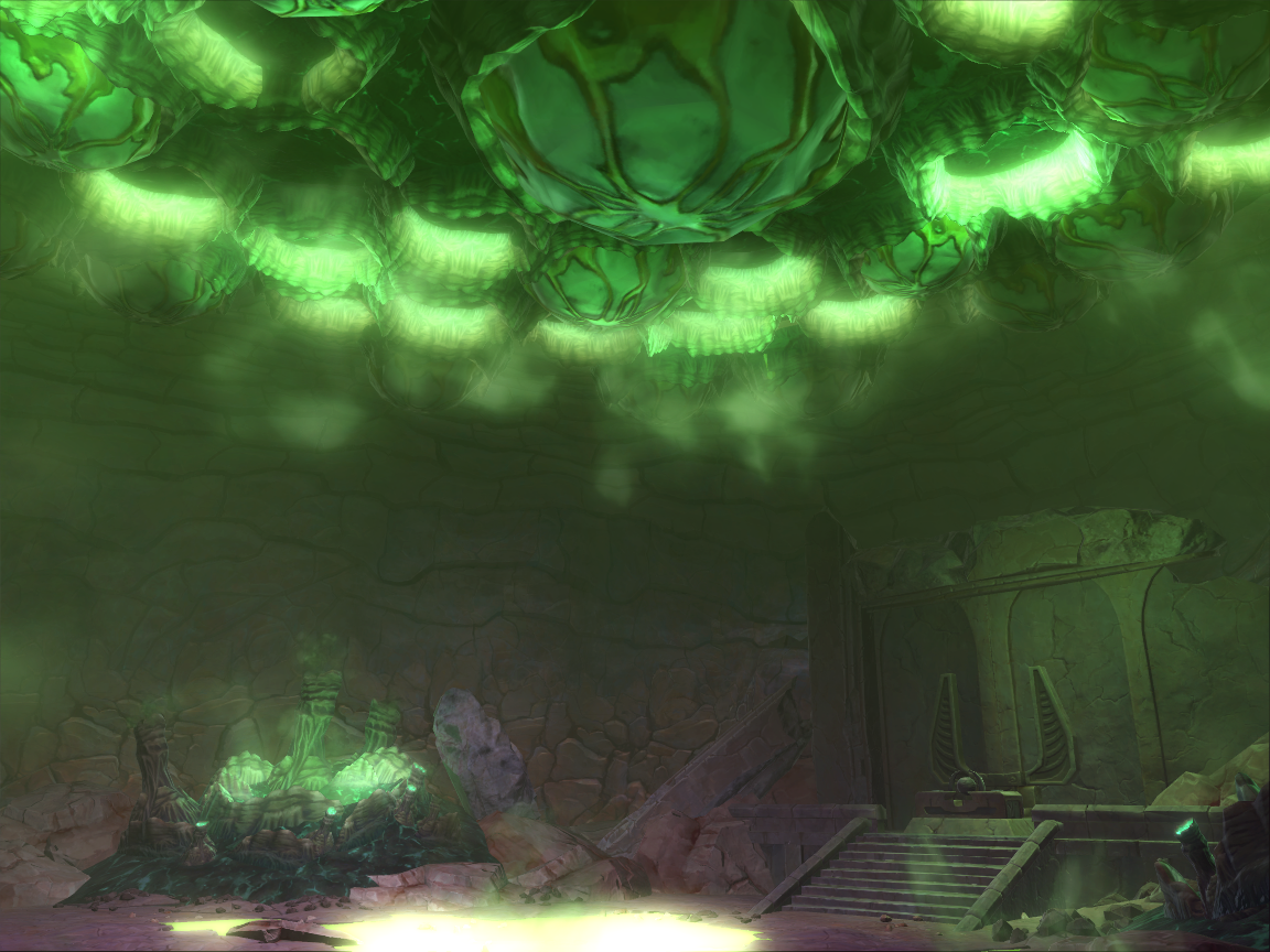 Unbeknownst to anyone at the time, the cave actually served as a hiding place for an artifact belonging to the Sith Lord known as Tulak Hord. During the Sith Empire's invasion of Balmorra, missile attacks inflicted damage upon the hazard vault, causing a leakage of its contents. However, this event also unintentionally created an entrance point into Hazard Vault 305 for anyone capable of enduring the lethal waste and the Mutated Colicoids that infested the area.