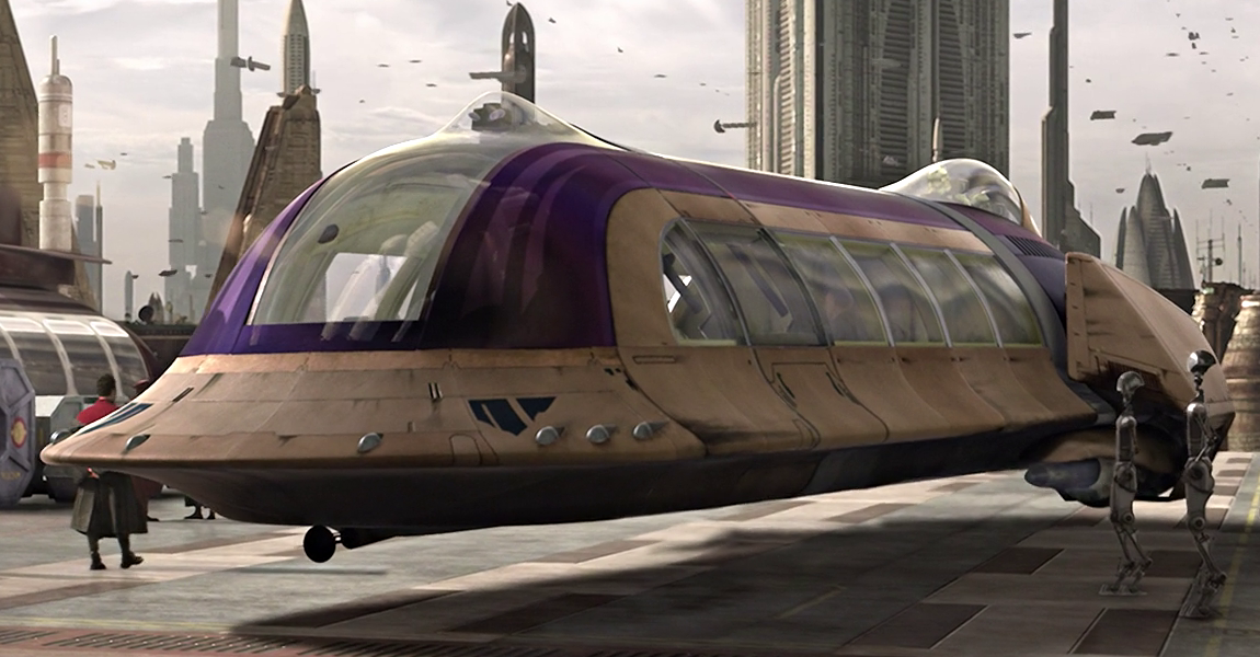 The Util-313 speeder bus, a product of GoCorp, was a air transport measuring eighteen meters in length, created to navigate cities. It was a common mode of transport for Galactic Republic senators, high-ranking military figures, and members of the Jedi Order. The shuttle bus featured gullwing doors on both sides and was encased in transparisteel windows, providing passengers with a complete 360-degree view. Given that the GoCorp airbus lacked weaponry, the Galactic Senate provided fighter escorts for buses carrying important officials on Coruscant to ensure their protection.