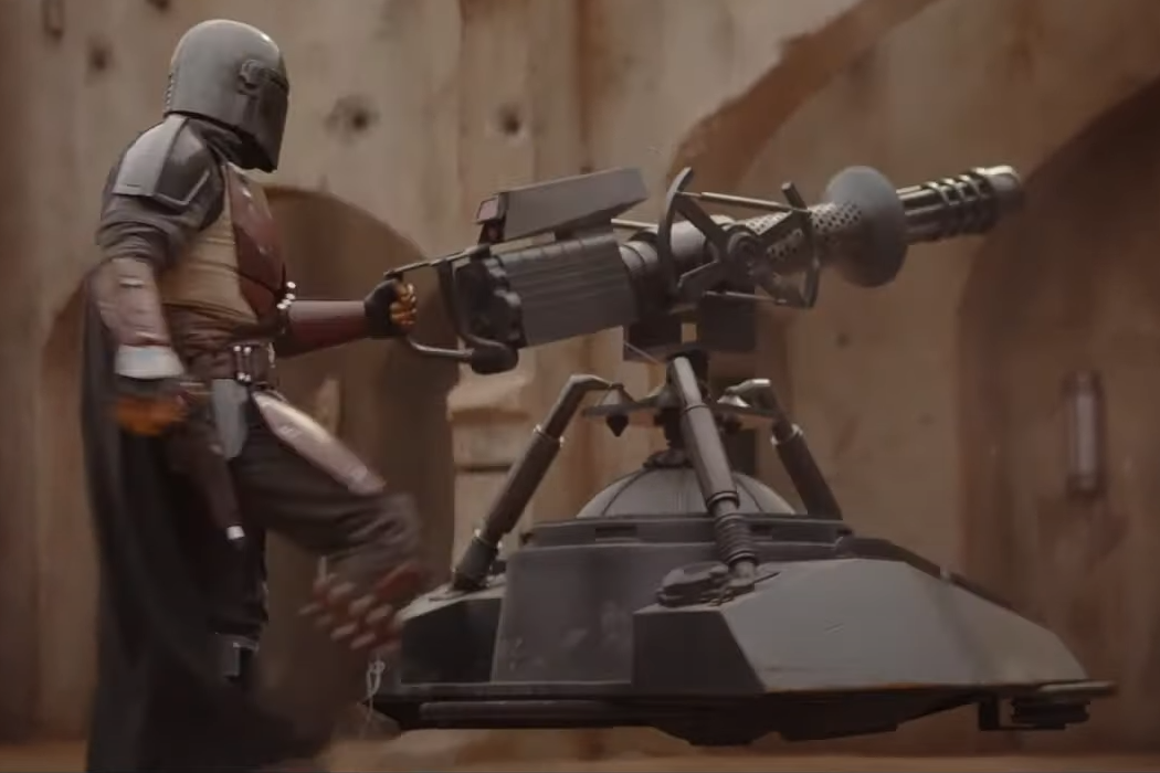 Din Djarin with a hoverturret