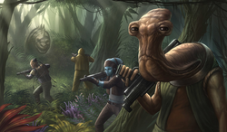 Hunting can be described as the pursuit and killing of wild creatures, typically for food, recreational purposes, or economic gain. On the forest moon known as Endor, the indigenous Ewoks would leave their treetop settlements and descend to the forest floor in search of sustenance through hunting. They employed diverse strategies, including the use of traps, to capture their prey. On their homeworld, the planet of Kalee, the Kaleesh people engage in the hunting of creatures like karabbac, mumuu, and erkush. Their primary motivation is not the acquisition of meat, but rather the demonstration of their courage. There were models of blasters that were made specifically to be used for hunting. The former senator named Johhar Kessen was known as a hunter of legendary skill. While the practice generally involves non-sentient creatures, there were instances of criminals hunting sentient beings illegally. Garnac, who led a Trandoshan hunting lodge, was infamous for kidnapping sentients from across the galaxy, including Jedi Apprentices, and transporting them to the moon Wasskah to hunt them for his amusement. A hunting ground was owned by Lexim on a forest planet.