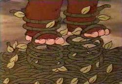 Teebo used vines to magically produce shoes.