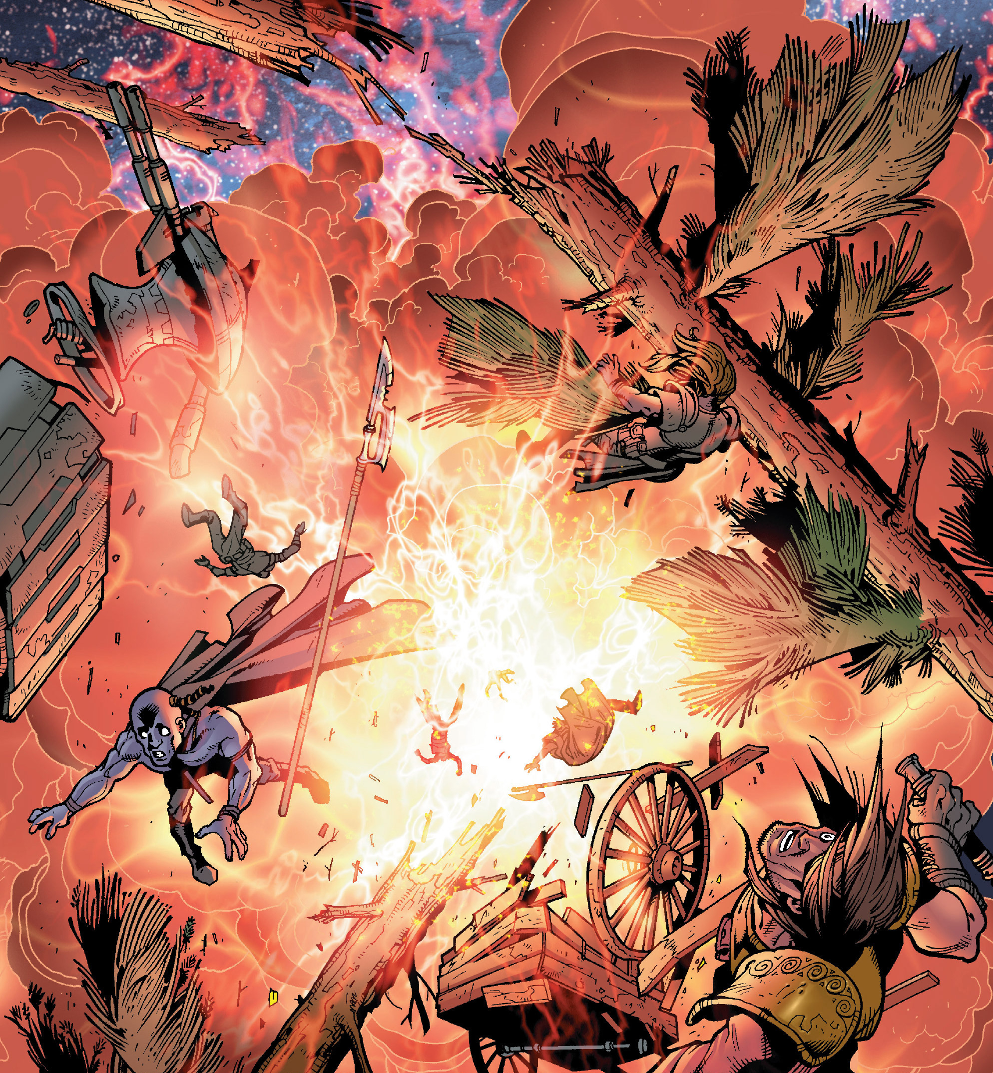 The repercussions of the Force wave unleashed by the Sith lords are depicted here.