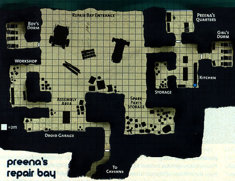 A map of Preena's repair bay