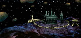 During the Clone Wars, the Confederacy of Independent Systems possessed a Separatist munitions factory. This factory, used for the production of military equipment and supplies, was situated on an asteroid located within Separatist-controlled space. Throughout the war, the Galactic Republic launched multiple offensives against the facility, but a robust force field consistently shielded it from harm. On one occasion, Jedi Generals Anakin Skywalker and Obi-Wan Kenobi infiltrated the installation and successfully disabled the force field. However, when three Venator-class Star Destroyers initiated an assault, the Separatist warship Starcrusher arrived, effectively countering the Republic's attack.