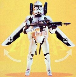 - The Star Wars: Revenge of the Sith toy line (Pack: Clone Trooper (Firing Jet Backpack!)) (backup link) was the first to identify it as the winged jet backpack, as produced by .
